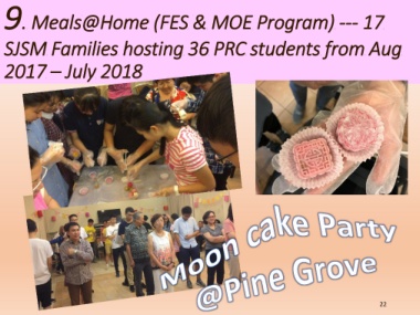 9. Meals@Home (FES & MOE Program) --- 17 SJSM Families hosting 36 PRC students from Aug 2017 – July 2018 22