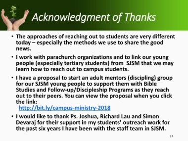 • I would like to thank Ps. Joshua, Richard Lau and Simon