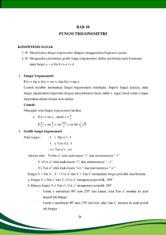 Fungsi Y = Sin x , Y = Cos x dan Y = Tan x merupakan fungsi periodik atau berkala.