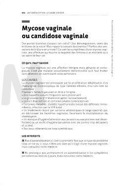 sations de brûlure en urinant ? Ce sont les symptômes d’une mycose vagi- Pour une lecture optimale des tableaux, reportez-vous à la page 17.