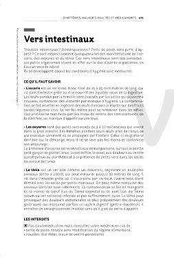 (constipation ou diarrhées) et à la présence de petits vers dans les selles