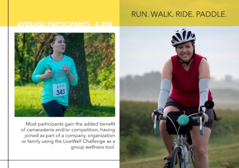 RUN. WALK. RIDE. PADDLE. AVERAGE PARTICIPANTS - 6,300 Most participants gain the added benefit of camaraderie and/or competition, having joined as part of a company, organization or family using the LiveWell Challenge as a group wellness tool.