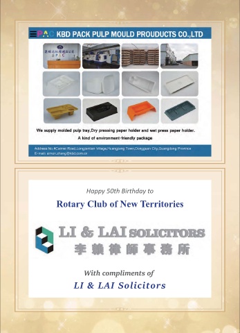 Happy 50th Birthday to Rotary Club of New Territories With compliments of LI & LAI Solicitors