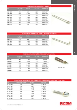 RESISTENCIAS INMERSIÓN. FORMA “U” CON SALIDA 90º