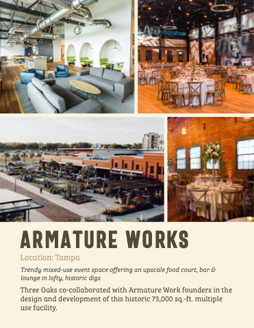 Three Oaks co-collaborated with Armature Work founders in the design and development of this historic 73,000 sq.-ft. multiple use facility.