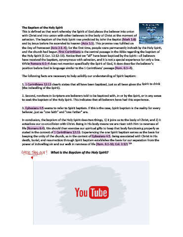 In conclusion, the baptism of the Holy Spirit does two things, 1) it joins us to the body of Christ, and 2) it