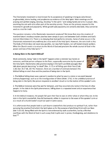 the Holy Spirit. Charismatics who practice slaying in the Spirit use Bible passages that