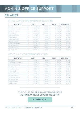 2019 SALARY GUIDE | COXPURTELL.COM.AU 17