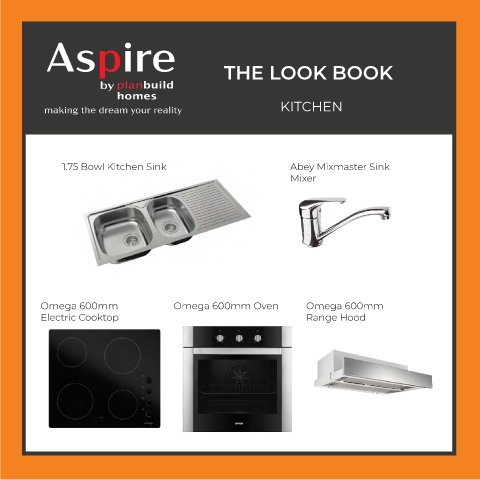 THE LOOK BOOK by making the dream your reality KITCHEN 1.75 Bowl Kitchen Sink Abey Mixmaster Sink Mixer Omega 600mm Omega 600mm Oven Omega 600mm Electric Cooktop Range Hood