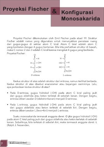 Suatu monosakarida termasuk anggota deret -D jika gugus hidroksil (-OH)