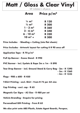 Price Excludes - Artwork layout for cutting @ R 90 once off