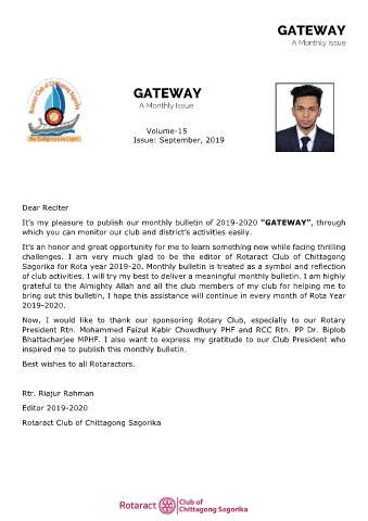 Page 3 - September Edition of regular Monthly Bulletin "GATEWAY" of RAC Chittagong Sagorika