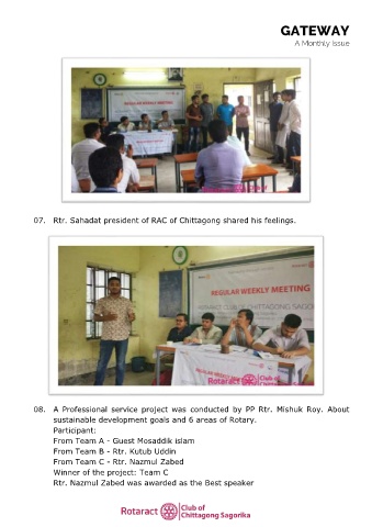 Page 5 - September Edition of regular Monthly Bulletin "GATEWAY" of RAC Chittagong Sagorika