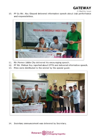 10. PP Ex Rtr. Abu Obayed delivered informative speech about club performance