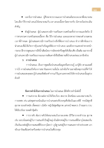 โดยเลือกวิธีการน าเสนอให้เหมาะสมกับเวลาเสนอเนื้อหาโดยกระชับ มีสาระในประเด็น