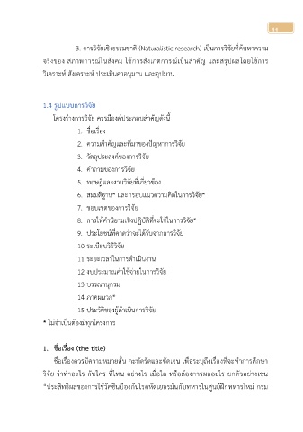โครงร่างการวิจัย ควรมีองค์ประกอบส าคัญดังนี้