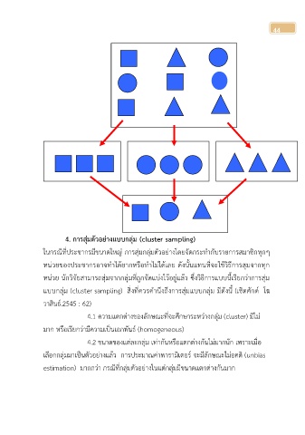 แบบกลุ่ม (cluster sampling) สิ่งที่ควรค านึงถึงการสุ่มแบบกลุ่ม มีดังนี้ (เชิดศักด์ โฆ