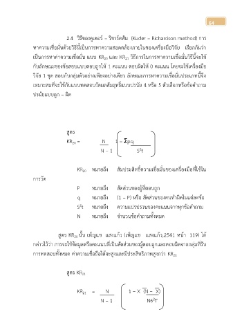 2.4 วิธีของคูเดอร์ – ริชาร์ดสัน (Kuder – Richardson method) การ