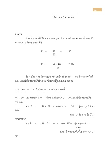 ค่า   P  =   .20 – .39  หมายความว่า      มีจ านวนผู้ตอบถูก 20 –