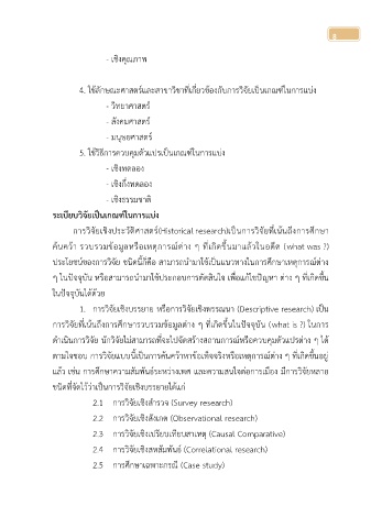 4. ใช้ลักษณะศาสตร์และสาขาวิชาที่เกี่ยวข้องกับการวิจัยเป็นเกณฑ์ในการแบ่ง
