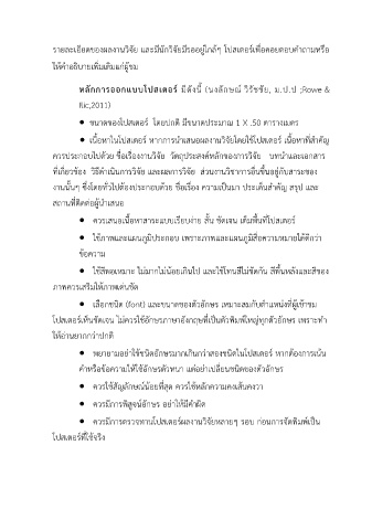 • เนื้อหาในโปสเตอร์ หากการน าเสนอผลงานวิจัยโดยใช้โปสเตอร์ เนื้อหาที่ส าคัญ