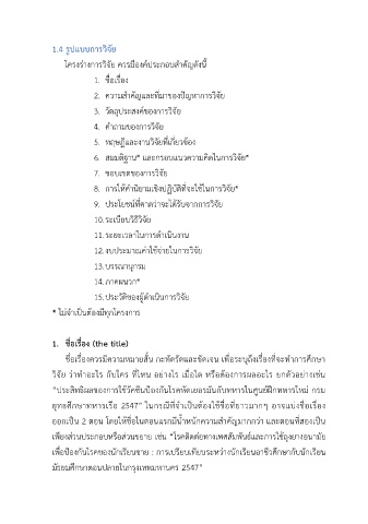 โครงร่างการวิจัย ควรมีองค์ประกอบส าคัญดังนี้