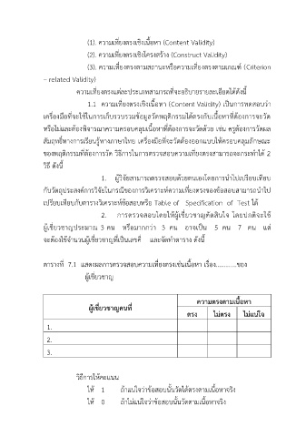 ตารางที่ 7.1 แสดงผลการตรวจสอบความเที่ยงตรงเช่นเนื้อหา เรื่อง.............ของ