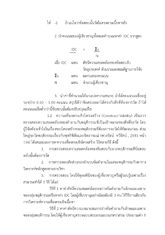 2. น าคะแนนของผู้เชี่ยวชาญทั้งหมดค านวณหาค่า IOC จากสูตร
