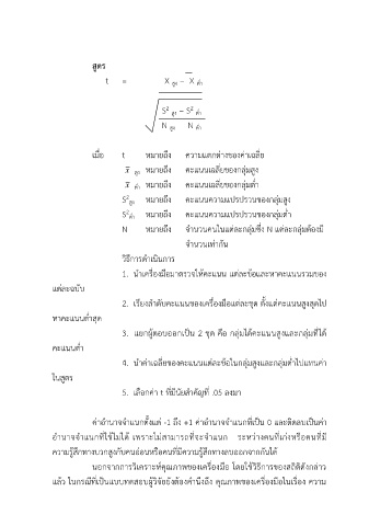 เมื่อ t หมายถึง ความแตกต่างของค่าเฉลี่ย