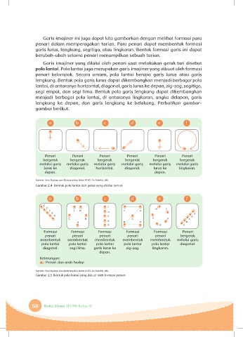 penari kelompok. Secara umum, pola lantai berupa garis lurus atau garis