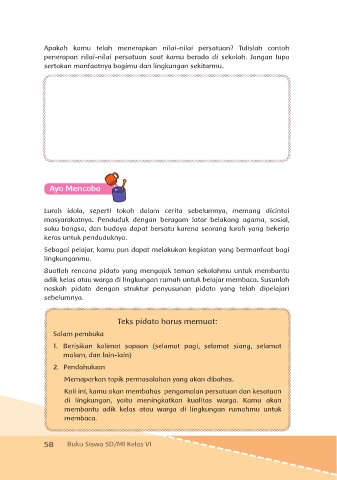 penerapan nilai-nilai persatuan saat kamu berada di sekolah. Jangan lupa