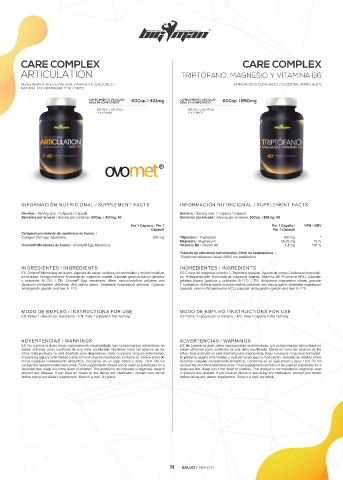 ES Ovomet ® Membrana de huevo, Agentes de carga: celulosa microcristalina y fosfato bicálcico ES Citrato de magnesio anhidro, L-Triptofano granular, Agente de carga: Celulosa microcristali-