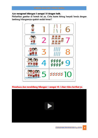 Ayo mengenal bilangan 1 sampai 10 dengan baik. Perhatikan gambar di bawah ini ya. Coba kamu hitung banyak benda dengan lambang bilangannya apakah sudah benar? Membaca dan membilang bilangan 1 sampai 10. Lihat video berikut ya 5