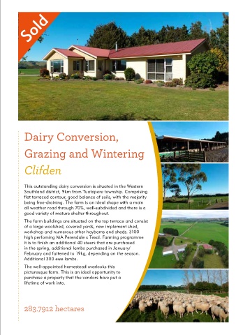 become a top dairy support block with the excellent contour. being free-draining. The farm is an ideal shape with a main