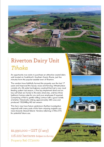 Central Southland Riverton Dairy Unit