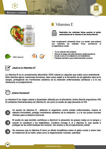 La vitamina E de origen natural y liposoluble utilizada por el laboratorio Janine Benoit proporciona 400