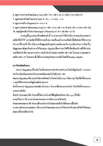 6. กฎการกระจาย (Distributive Law) A(B + C) = AB + AC A+ (BC) = (A+ B)(A+C)