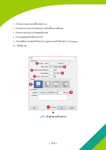 9. ก าหนดา้อความแสดงก ากับตาราง Caption และค าอธิบายตาราง Summary