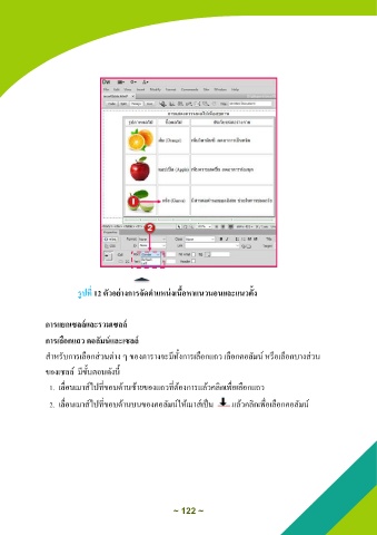 ส าหรับการเลือกส่วนต่าง ๆ าองตารางจะมีทั้งการเลือกแถว เลือกคอลัมน์ หรือเลือกบางส่วน