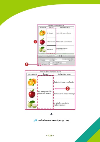 รูปที่ 19 ตัวอย่างการรวมเซลล์ (Merge Cell) ~ 129 ~