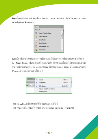 ส าหรับใช้งานเฉพาะเรื่องไว้ โดยสามารถเปิดหรือปิดพาเนลการท างานได้โดยคลิกเมนูค าสั่ง