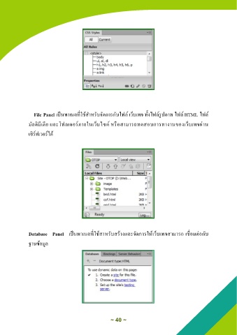 File Panel เป็นพาเนลที่ใช้ส าหรับจัดการกับไฟล์ เว็บเพจ ทั้งไฟล์รูปภาพ ไฟล์ HTML ไฟล์