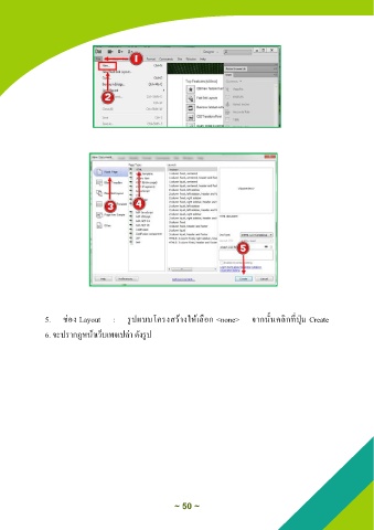 5. ช่อง Layout : รูปแบบโครงสร้างให้เลือก <none> จากนั้นคลิกที่ปุ่ ม Create 6. จะปรากฏหน้าเว็บเพจเปล่า ดังรูป ~ 50 ~
