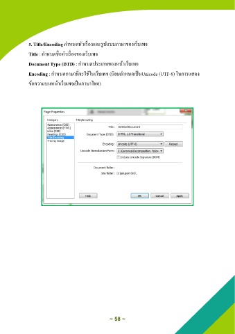 Encoding : ก าหนดภาษาที่จะใช้ในเว็บเพจ (นิยมก าหนดเป็นUnicode (UTF-8) ในการแสดง