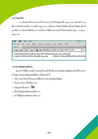 า้อความในเว็บเพจนั้นการกดแป้น Space bar จะเป็นการเว้นช่องไฟเพียงหนึ่งช่องไฟเท่านั้น แต่