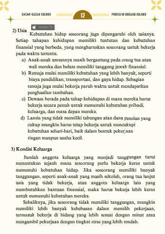 finansial yang berbeda, yang mengharuskan seseorang untuk bekerja