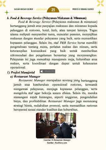 b. Food & Beverage Service (Pelayanan Makanan & Minuman)