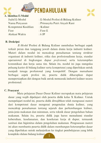 Judul E-Modul : E-Modul Profesi di Bidang Kuliner