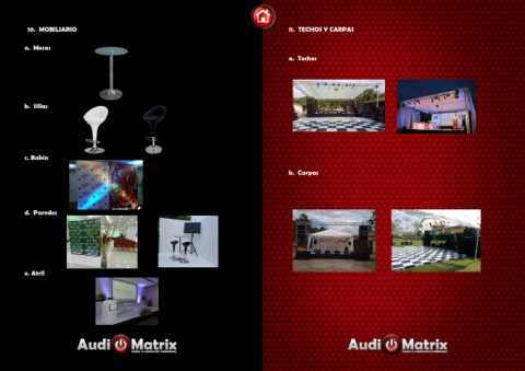 10. MOBILIARIO 11. TECHOS Y CARPAS a. Mesas a. Techos b. Sillas c. Bakin b. Carpas d. Paredes e. Atrìl