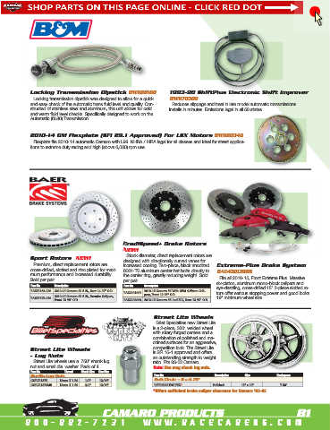 BAE55163-020 2010-15 Camaro SS 6.2L, Rear 14.37” O.D. BAE2301061 2010-15 Camaro SS With OEM 4-Piston Cali- tors offer serious stopping power and good looks.
